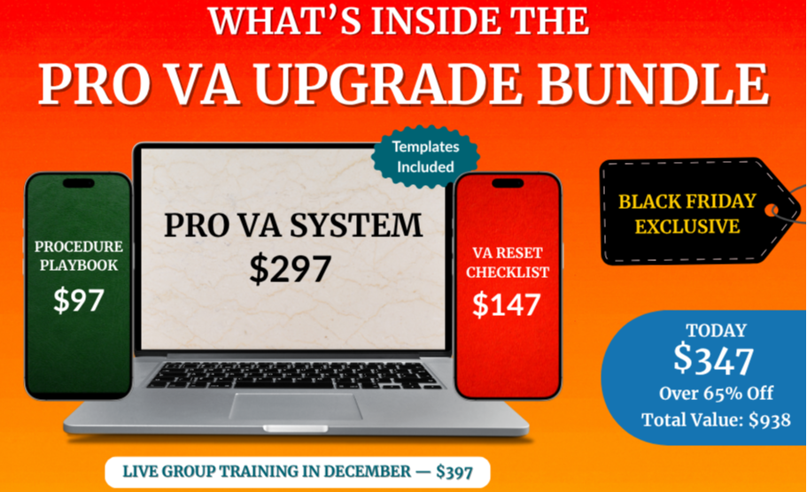 âś… Pro VA System ($297): A complete training program for your VA to learn how to think critically, take initiative, and manage daily operations with confidence