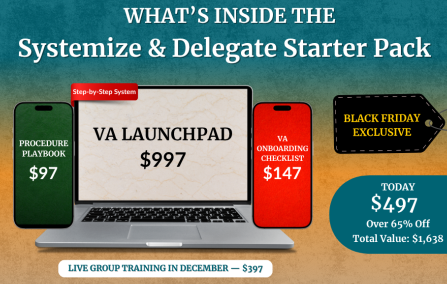 âś… VA Launchpad ($997): Step-by-step guidance to help you hire, onboard, and manage your first VA with confidence and structure