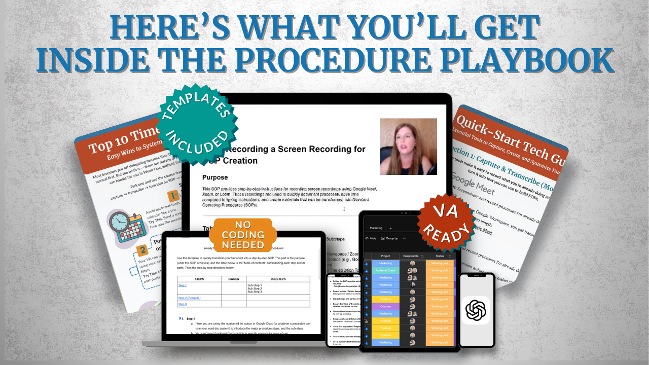 Learn the exact process I use to turn everyday tasks into clear, repeatable SOPs using a simple screen recording and ChatGPT. Walk away with one fully built system you can hand off immediately.